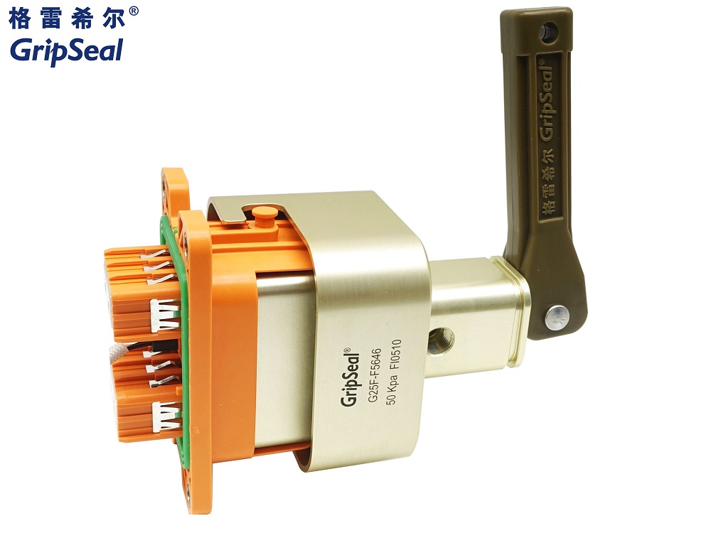 格雷希爾GripSeal G25F系列電測快速接頭,是針對新能源電池包、電機控制器等電接口測試應(yīng)用而研發(fā)設(shè)計的快速接頭。采用手柄式操作方式,利用杠桿原理,操作更輕便、密封穩(wěn)定。氣密測試、低壓電信號測試等適用,可以用于封堵或充氣。在新能源生產(chǎn)測試中有著非常重要的作用,是新能源安規(guī)測試實用工具之一。